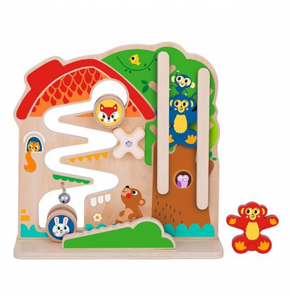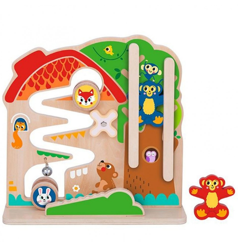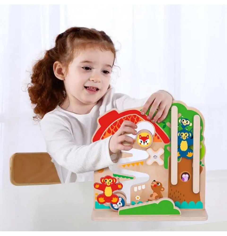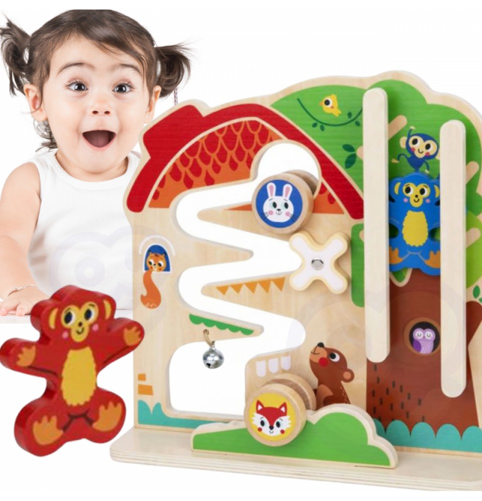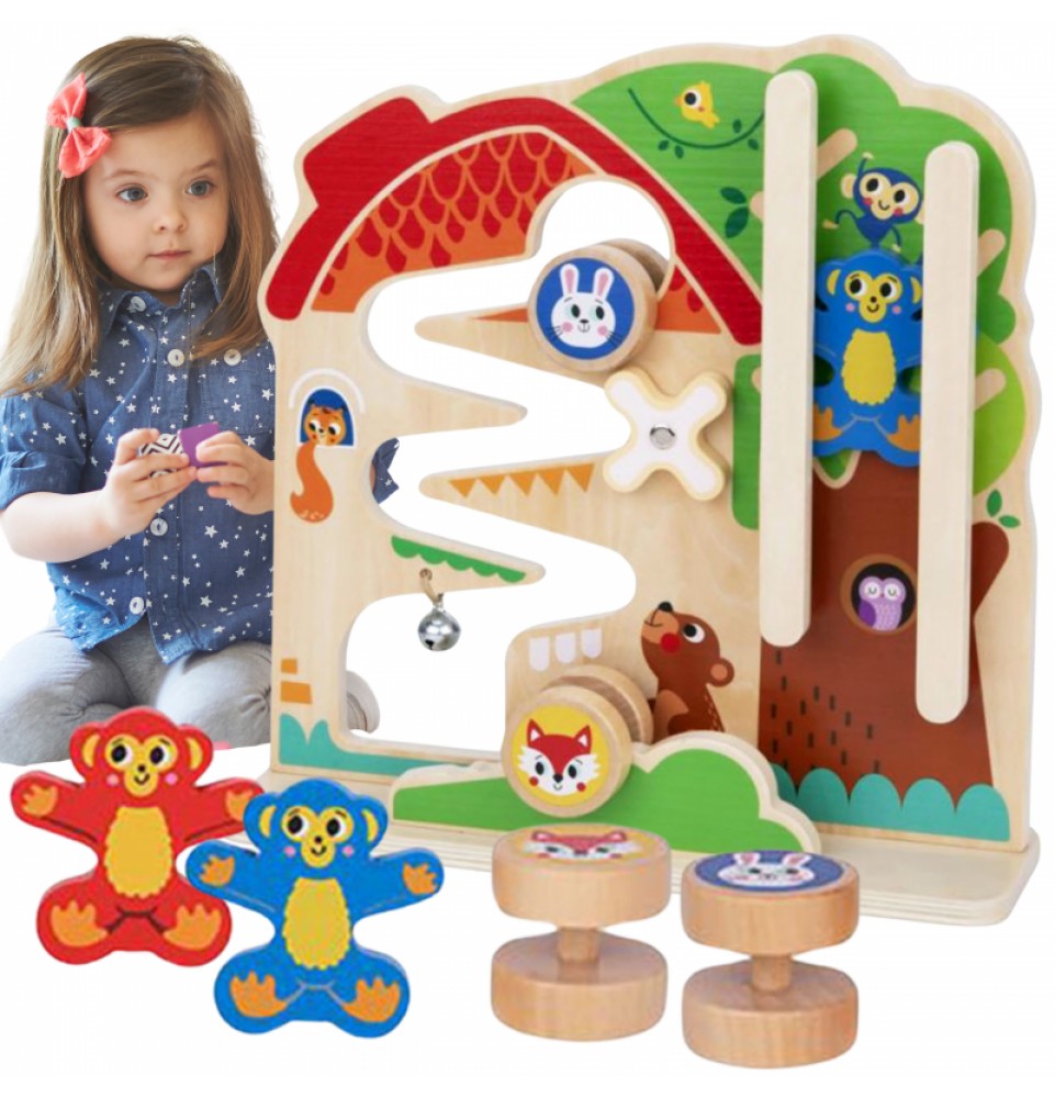 „TOOKY TOY“ 2 viename medinė manipuliavimo lenta yra lavinamasis žaislas, skirtas neribotoms žaidimo valandoms. Ji puikiai tinka pirštų miklumui lavinti . Joje yra varpelis , kuris skleidžia garsus ir skatina klausos įgūdžių vystymąsi.
