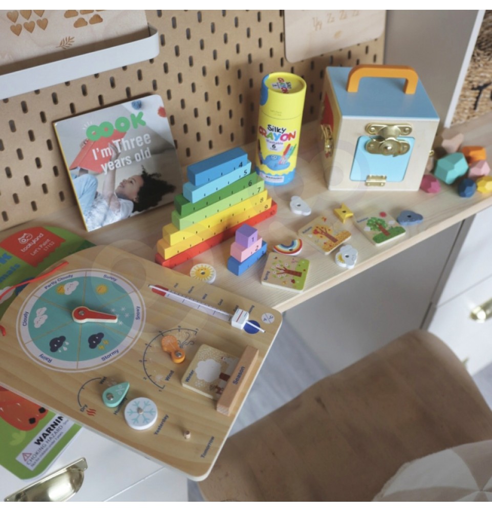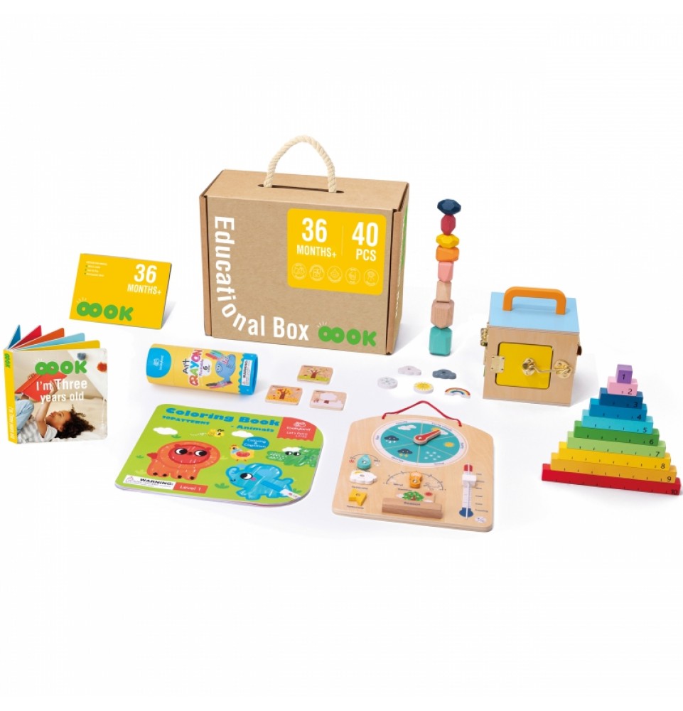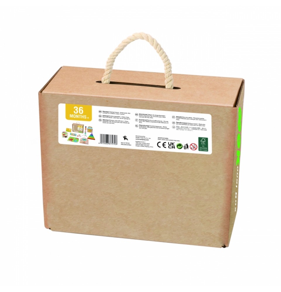 „Tooky“ žaislų lavinamoji dėžutė skirta vaikams nuo 3 metų amžiaus. Joje yra 6 Montessori sensoriniai ir lavinamieji žaislai , kurie palaiko sveiką vaiko psichomotorinį vystymąsi ir stimuliuoja jo pojūčius : regą, lytėjimą ir klausą . Ji taip pat lavina loginį mąstymą ir akių bei rankų koordinaciją . Taip pat yra išsamus vadovas tėvams, kuris parodys, kada supažindinti mažylį su žaislu ir kaip su juo žaisti. „Tooky“ žaislų lavinamoji dėžutė yra puiki dovana mažyliui.