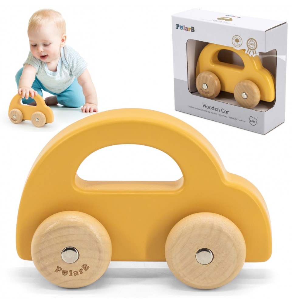 VIGA PolarB medinis stūmimo automobilis geltonas