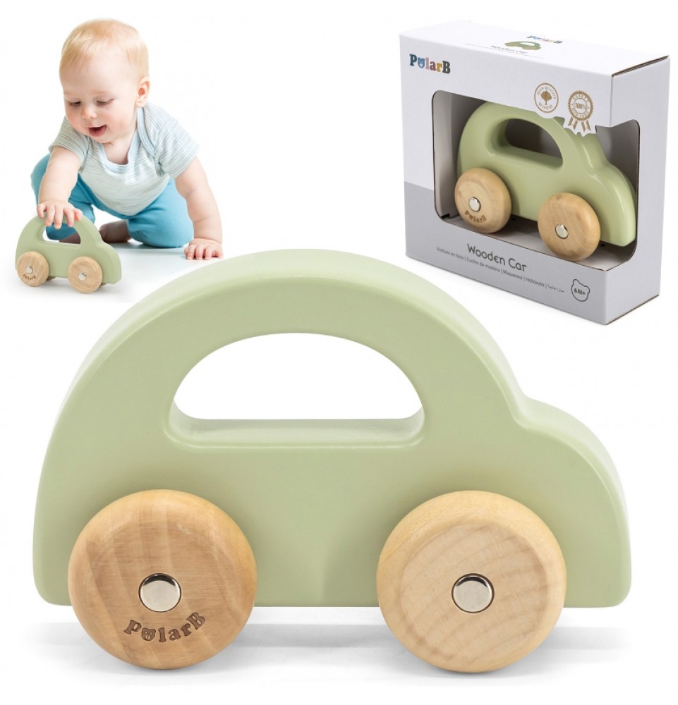 Medinis VIGA stumiamas automobilis bus pirmoji jūsų vaiko mėgstamiausia transporto priemonė. Automobilis pasižymi paprastu, pasteliniu dizainu, kuris tikrai patiks jūsų vaikui. Jį lengva ir patogu suimti mažoms rankytėms. Jis turi tylius ir sklandžiai riedančius ratukus. Stumdamas automobilį, jūsų vaikas lavins rankinius įgūdžius, vadinamuosius „smulkiosios motorikos įgūdžius“ – rankų judesius. Jis turi užapvalintus kraštus, kurie yra saugūs kūdikiams.