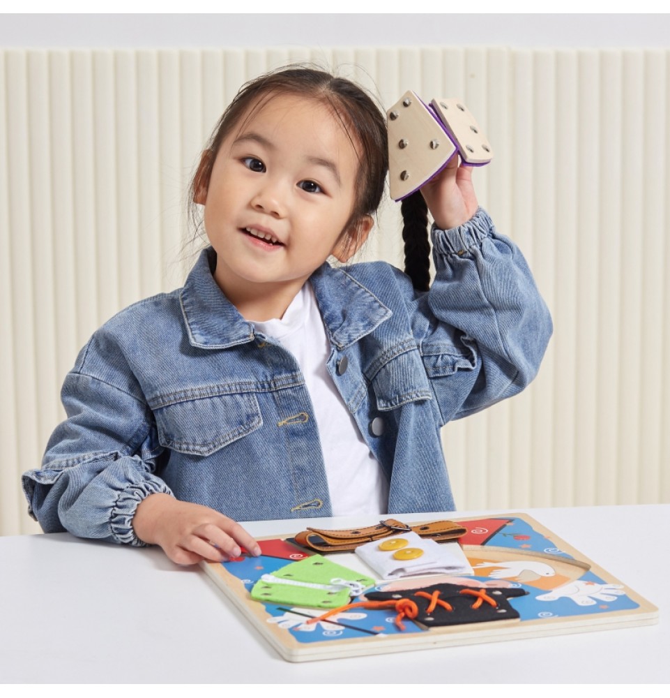 VIGA medinė manipuliavimo lenta su sagtimis ir užraktais Monstessori magas