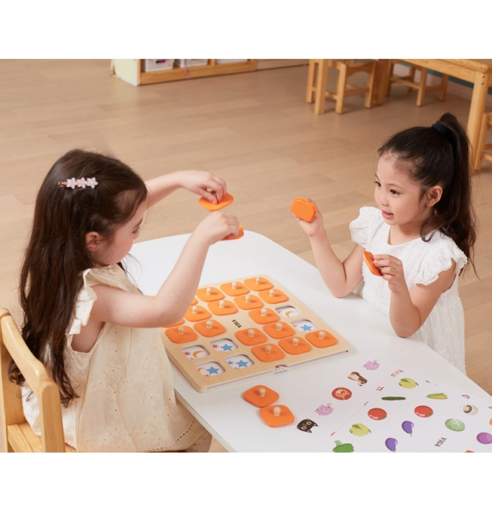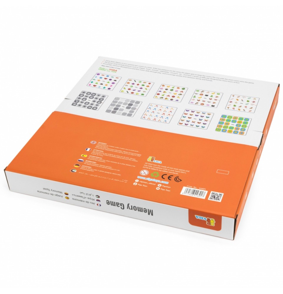 „Viga“ atminties žaidimas – puikus būdas praleisti laiką kartu. Žaidimo metu vaikai lavina atmintį ir susikaupimą . Rinkinį sudaro 10 kortelių su įvairiomis temomis ir skirtingais sudėtingumo lygiais. Pagamintos iš aukščiausios kokybės medžiagų, saugios vaikams ir aplinkai. Pakelkite apskritimą už rankenėlės, įsiminkite paveikslėlį po apačia ir suraskite kitą vienodą! Laimi tas, kuris suranda daugiausiai porų. Smagiai praleiskite laiką!