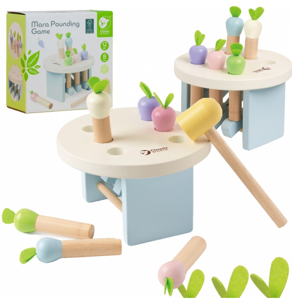 „ Classic World“ įgūdžių žaidimas „Poke the Morky“ yra fantastiškas žaidimas, lavinantis mažylių refleksus, stebėjimo įgūdžius, rankų miklumą ir regėjimo aštrumą . Subtilūs pasteliniai atspalviai traukia akį ir skatina vaikus siekti žaislo. Žaidimas lavina mažylių miklumą tiksliai baksnojant ką tik iššokusias iš skylutės morkas. Rinkinį sudaro šešios įvairių spalvų morkos, plaktukas ir žavus rėmelis morkoms sudėti.