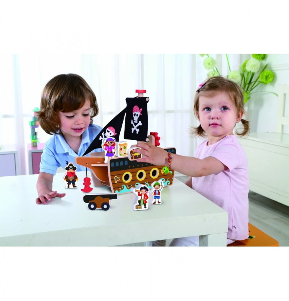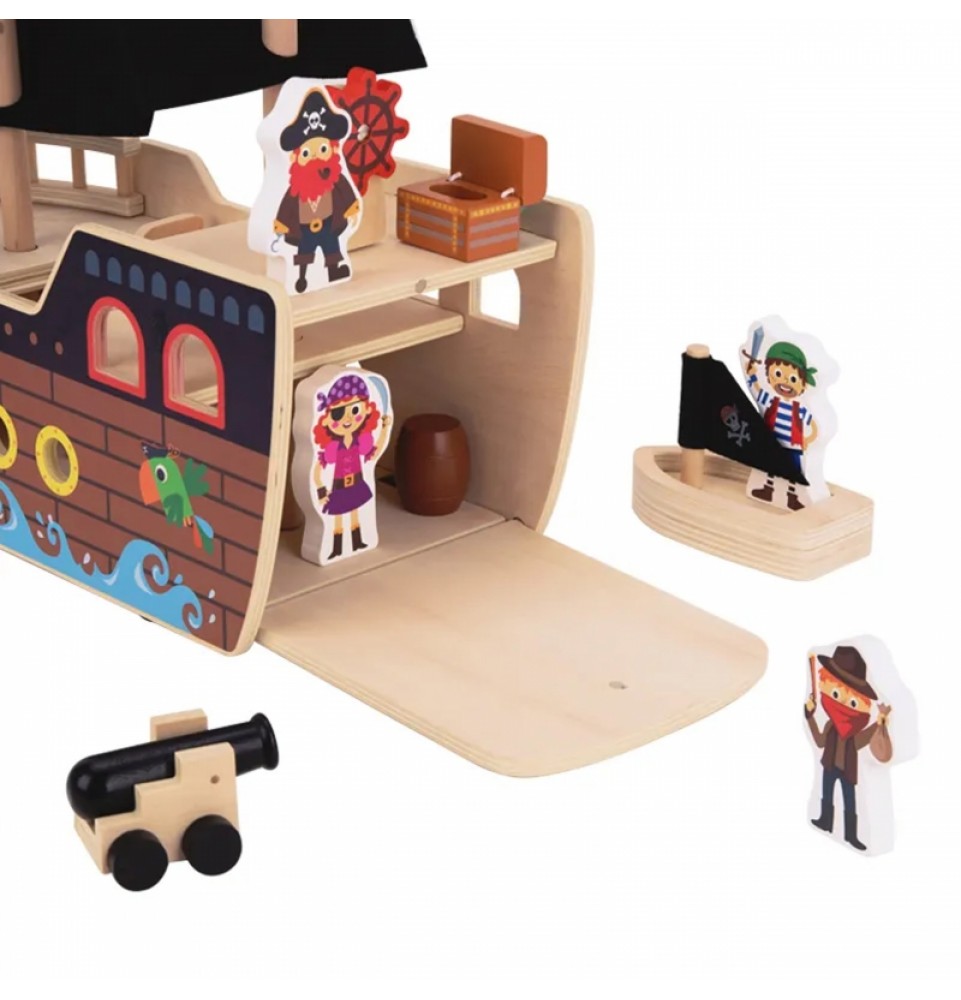 Žaislas pagamintas iš aukštos kokybės medienos , užtikrinančios patvarumą ir saugumą intensyvaus žaidimo metu. Dėl kruopštaus apdailos ir gražių spalvų laivas traukia dėmesį ir skatina kurti savo istorijas!