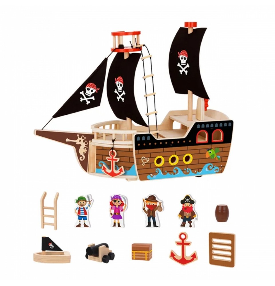 TOOKY TOY piratų laivo medinių figūrėlių rinkinys