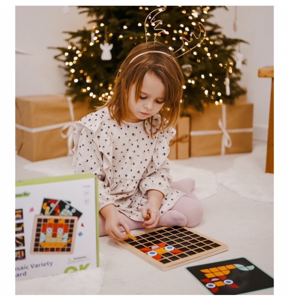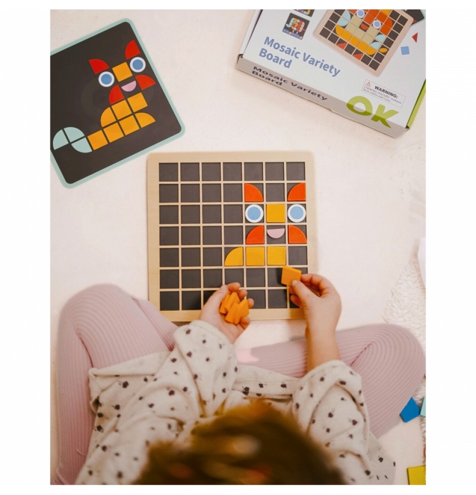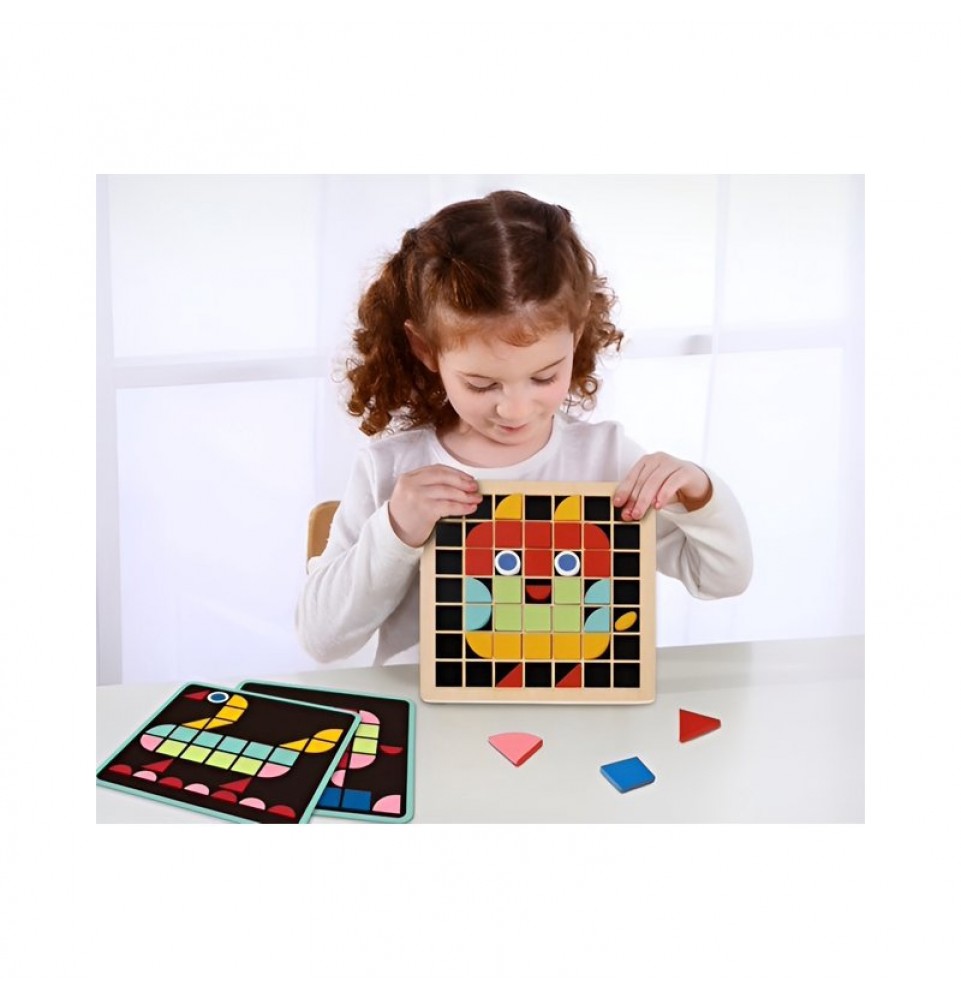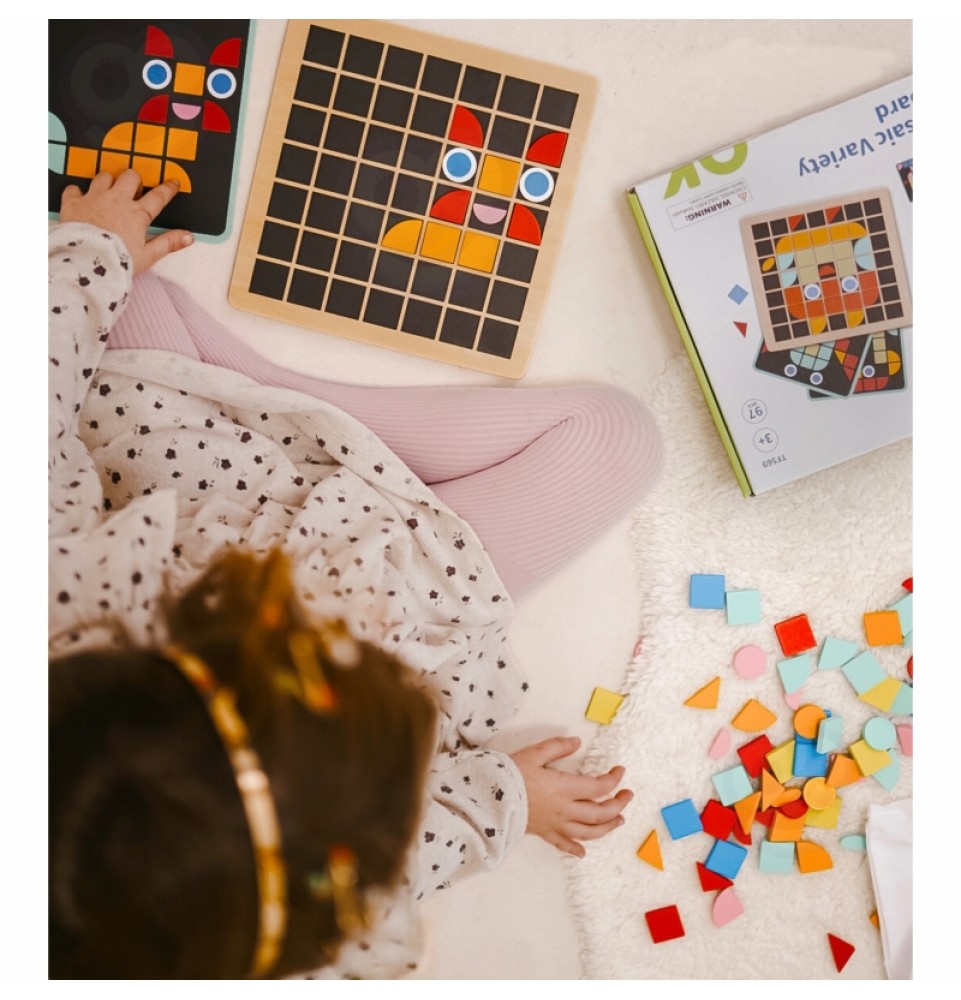 Medinė mozaika iš „Tooky Toy“ – puiki žaidimo idėja jūsų vaikui. 97 detalės suteiks jūsų vaikui valandų valandas unikalių pramogų. Vaikai su kubeliais mokosi spalvų ir formų. Ji puikiai tinka žaisti vienam. Viskas pagaminta iš aukštos kokybės medžiagų, be aštrių briaunų, sukurta atsižvelgiant į aplinką ir vaikų saugumą . Formų ir spalvų dėjimas ir derinimas vaidina svarbų vaidmenį tinkamame vaiko vystymesi. Jūsų vaikas gali išlaisvinti savo kūrybiškumą ir kurti savo raštus, lavindamas vaizduotę!