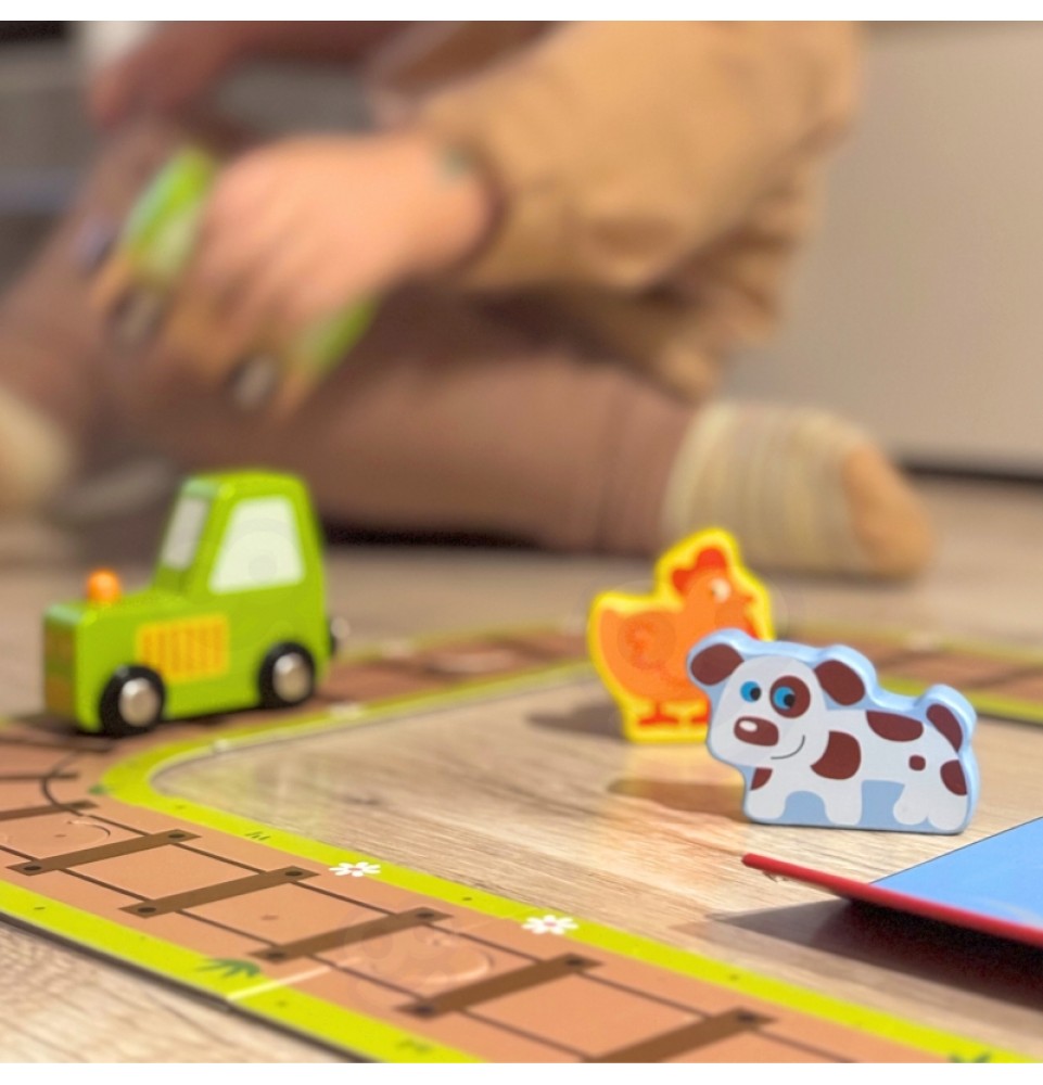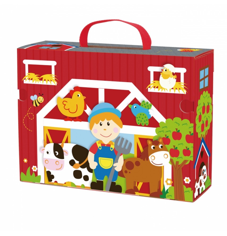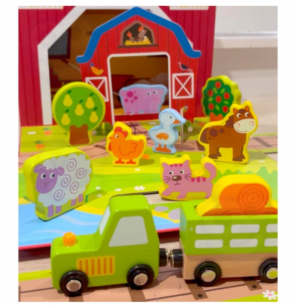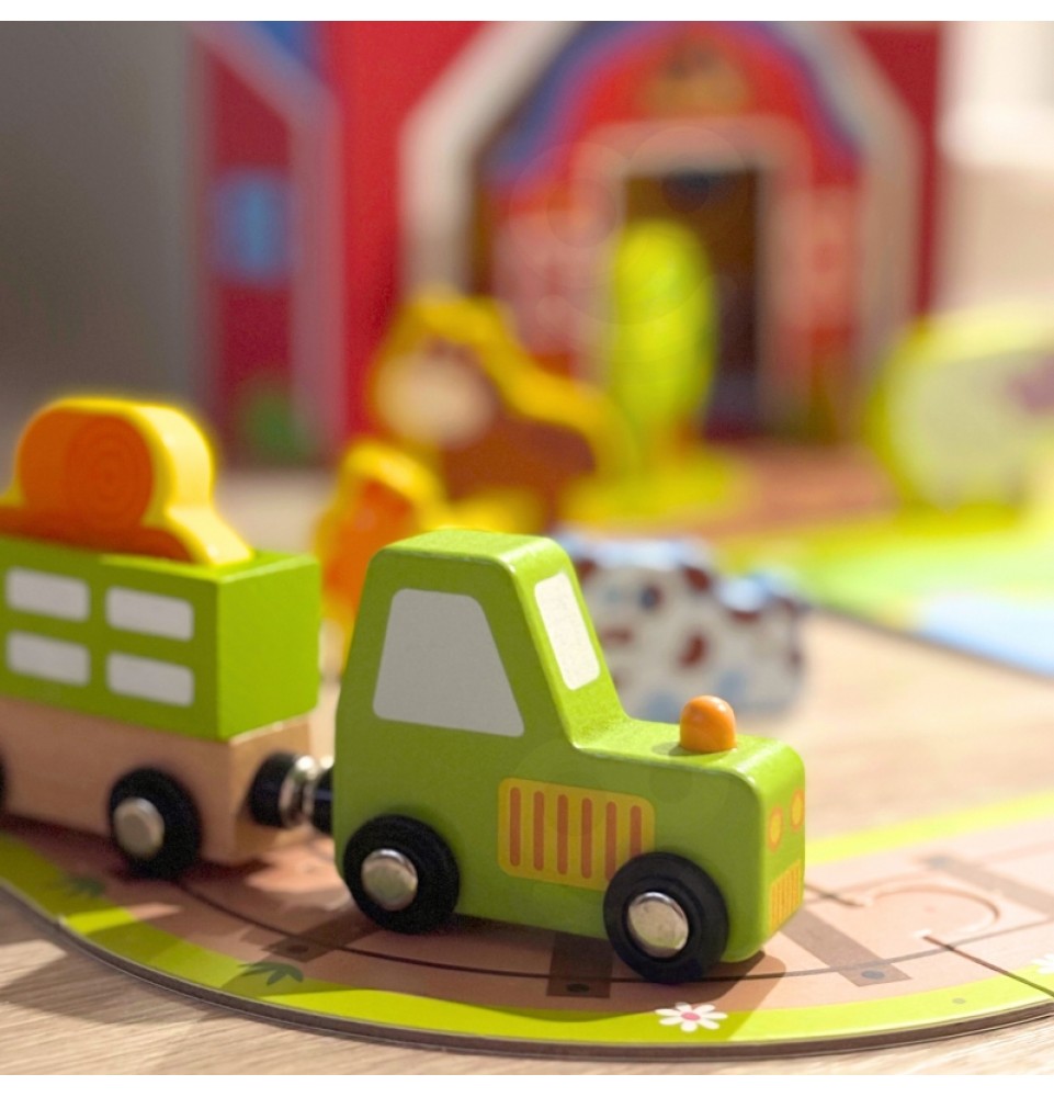 Medinis fermos lagaminas iš TOOKY TOY – tai išsamus medžiagų rinkinys , kuris tikrai suteiks valandų valandas kūrybiško žaidimo. Be aukštos kokybės medinių bėgių, šiame mediniame rinkinyje taip pat yra traktorius, kuris magnetu jungiasi prie priekabos.