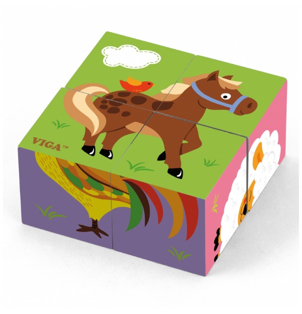 VIGA medinis dėlionės ūkis 4 kaladėlės