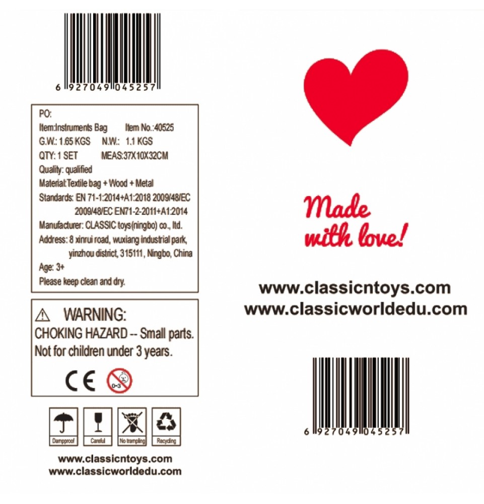 Garsaus „Classic World“ prekės ženklo instrumentų rinkinys yra puikus produktas jūsų vaikui. Žaislas, kuris padės Jis lavins jūsų vaiko rankinius ir klausos įgūdžius bei sustiprins natūralų ritmo pojūtį. Rinkinį sudaro devyni muzikos instrumentai , kurie bus neatsiejama kasdienio žaidimo dalis. Jis taip pat puikiai tinka kelionėms , nes supakuotas patogiame nešiojimo dėkle.